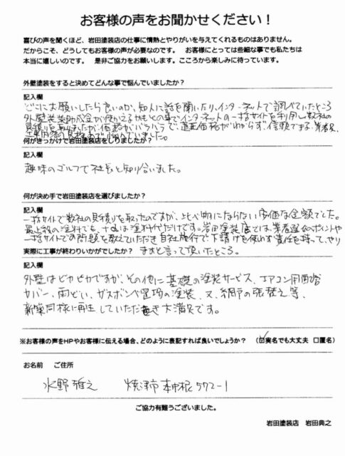 職人の人柄で安心できました!お客様アンケートをいただきました。