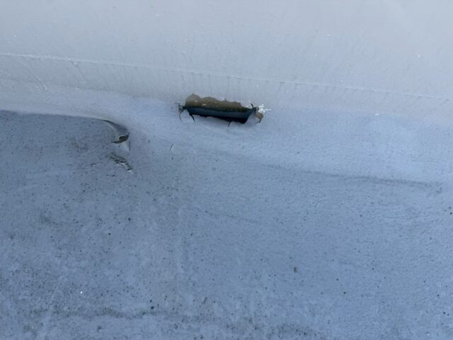 シート防水を撤去し、脆弱な所を補修をして、全体的にウレタン防水を流します。