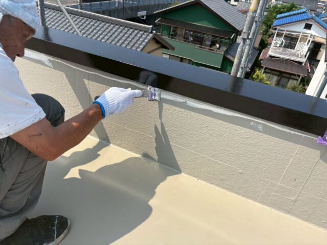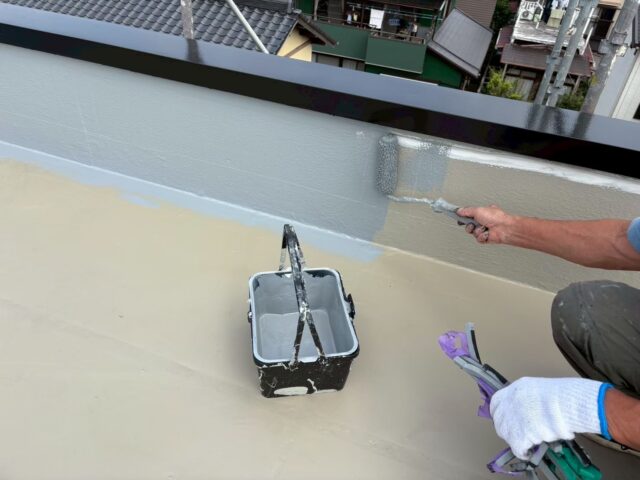 ウレタン防水を施工後、トップコートを塗装して防水層の保護をします。定期的にトップコートの塗装は必要となりますが、トップコートの塗装をしていれば防水層は長持ちします。