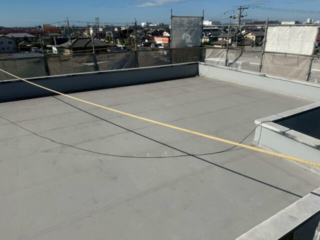 屋上は日中はずっと紫外線の影響を受けているので、劣化も早くなっています。なので、外壁よりも当然劣化が早くなります。 8年周期くらいでトップコートの塗装をするのがりそうですね(^^)