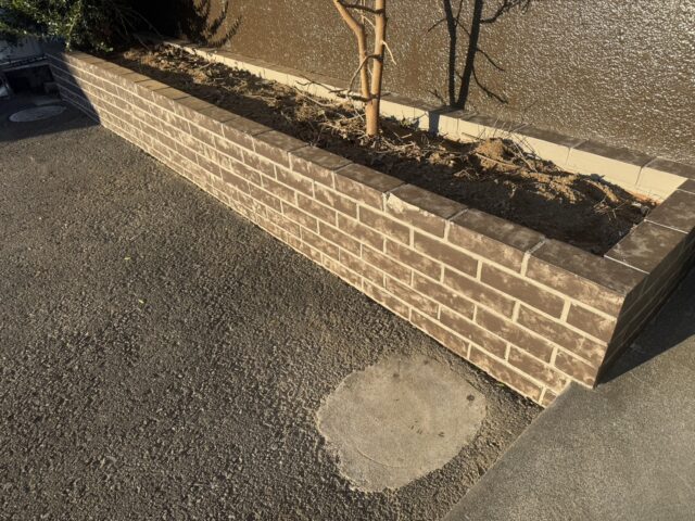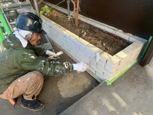 施行中のお客様から、花壇のブロックも一緒に塗装してほしいが、どうせならお洒落に塗装してほしいと依頼をされました。ワンポイントになるデザイン塗装を提案したところ、お客様も気に入っていただいたので施工させていただきました。