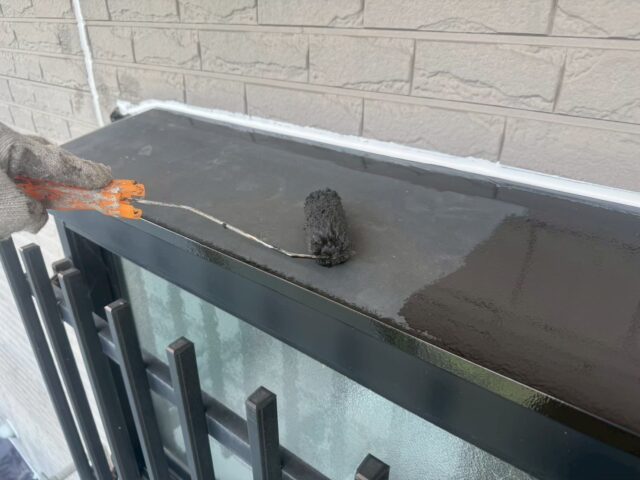 鉄部はさび止め塗装を行い、さびの防止と上塗り塗料の密着を高めます。とても大事な工程なので丁寧に塗装をしていきます。