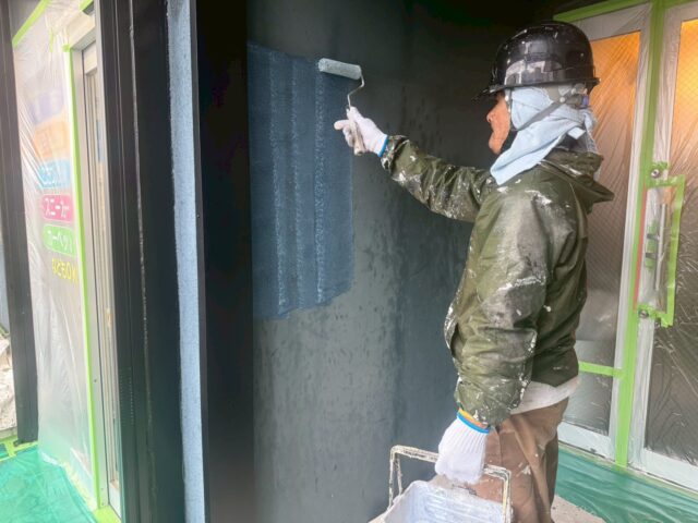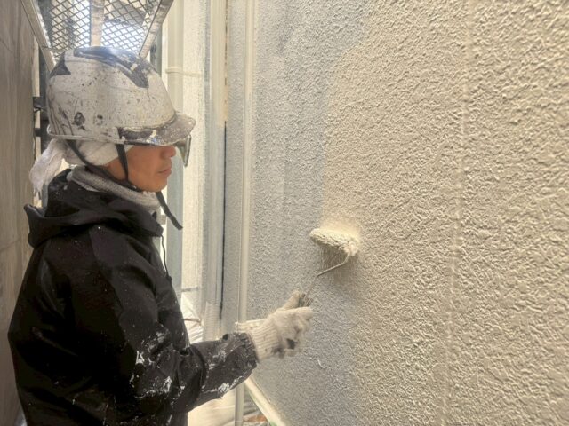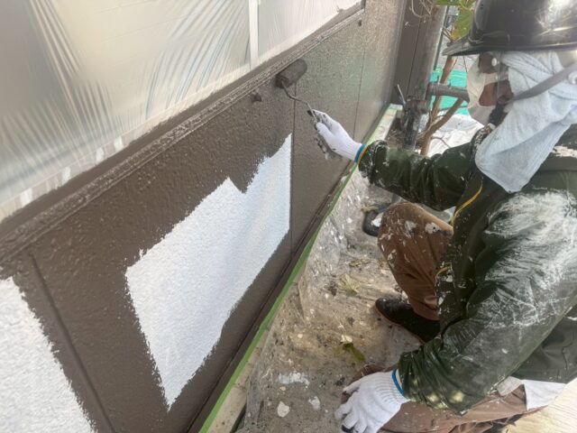 下塗り塗料で塗料の吸い込み止め、密着力を高め、 中塗り、上塗りの作業に入ります。