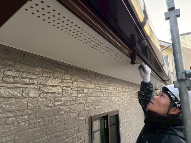 外壁の塗装が完了したらいよいよ各所の仕上げ塗装工事に入ります。一般的に付帯部などは中塗りまで済ませてから外壁塗装ををして、完了後に最終の仕上げ塗装を行います。