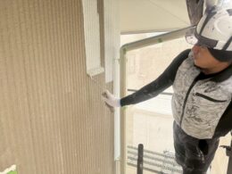 細かい部分やローラーが入らない所は刷毛(はけ)でぬってからローラーで塗装をしていきます。