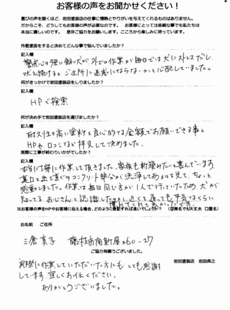 岩田塗装店に任せようと決めていました!お客様の声をいただきました。
